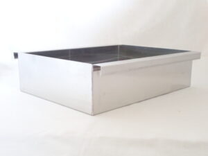 コーナー部はフル溶接を施し、溶接後にはケミカル処理により溶接焼けや酸化皮膜を除去。耐食性と外観品質を確保しています。