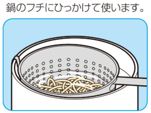 鍋のフチにひっかけて使います。