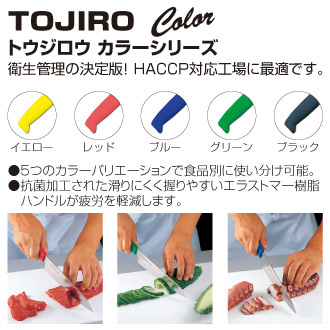 肉、魚、野菜など様々な用途に使える、便利な万能型規格 全長(mm) カラー 商品コード 170 305 イエロー S02200005290 170 305 レッド S02200005420 170 305 ブルー S02200005550 170 305 グリーン S02200005680 170 305 ブラック S02200005810 牛刀
